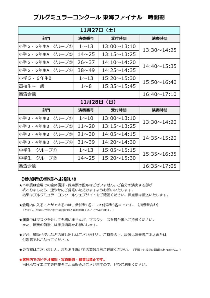 【東海ファイナル】11月27日・28日の時間割について