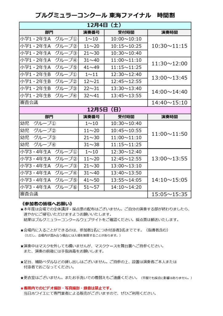 【東海ファイナル】12月4日・5日の時間割について